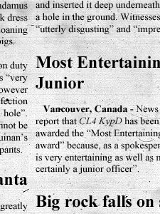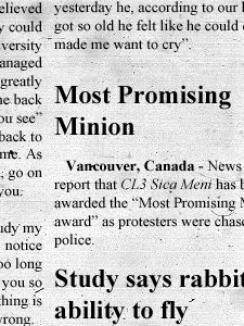 | ::Links:: Reports Projects FM's Adventure Projects Cartoon Iain's Space ENT party World Cup Soccer New Cages Incoming Letters Credits ::OTF:: Gaming Special Ops Trivia Entertainment Outpost 10F ::Past Editions:: |