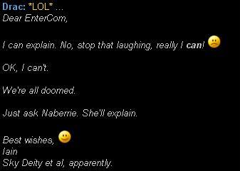 This one will be blissfully brief as I've not been around too much recently due to an extended period of leave that I've just returned from! What I do want to say, however, is that I'm delighted with how far a lot of us have come since I took charge back in November. Way back then Entertainment was in turmoil: there had been a string of resignations of key officials and things were grinding to a stand-still. Luckily, everything has since been stabilised and looks to be going along very nicely once again. There are a few concerns regarding certain projects, but it is nothing like it was when I took charge. Don't get me wrong, I'm not claiming credit for these changes - I'm crediting you folks for how you dug deep, stuck at it and worked as a unit to get things sorted once again. A massive kudos to you all for that! So, to everyone
