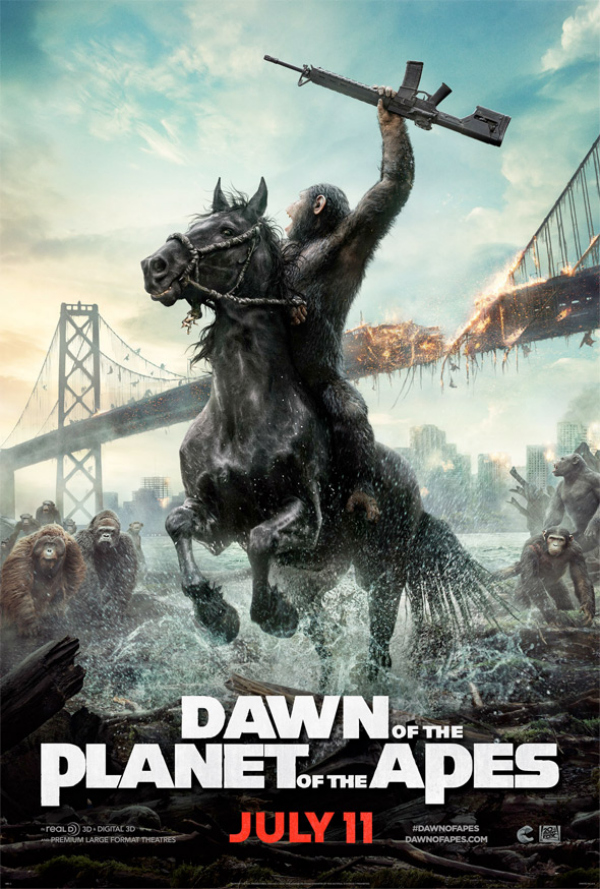 I saw Dawn Of The Planet Of The Apes a couple weeks ago, and it was a worthy sequel and new addition to the Apes franchise. There were some interesting parallels between this new movie and Battle Of The Planet Of The Apes from the 70s. They both (logically) involved a conflict between apes and humans, but they were also both set in the still future year of 2018. And as you might suspect, the 2014 depiction of 2018 is closer to that of the depiction presented in the original movies.